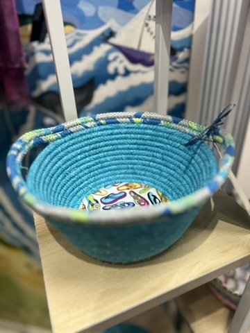Ruth Ellis is a local designer and artisan specializing in fabric home decor such as baskets, trivets, place mats as well as a range of bags and totes.