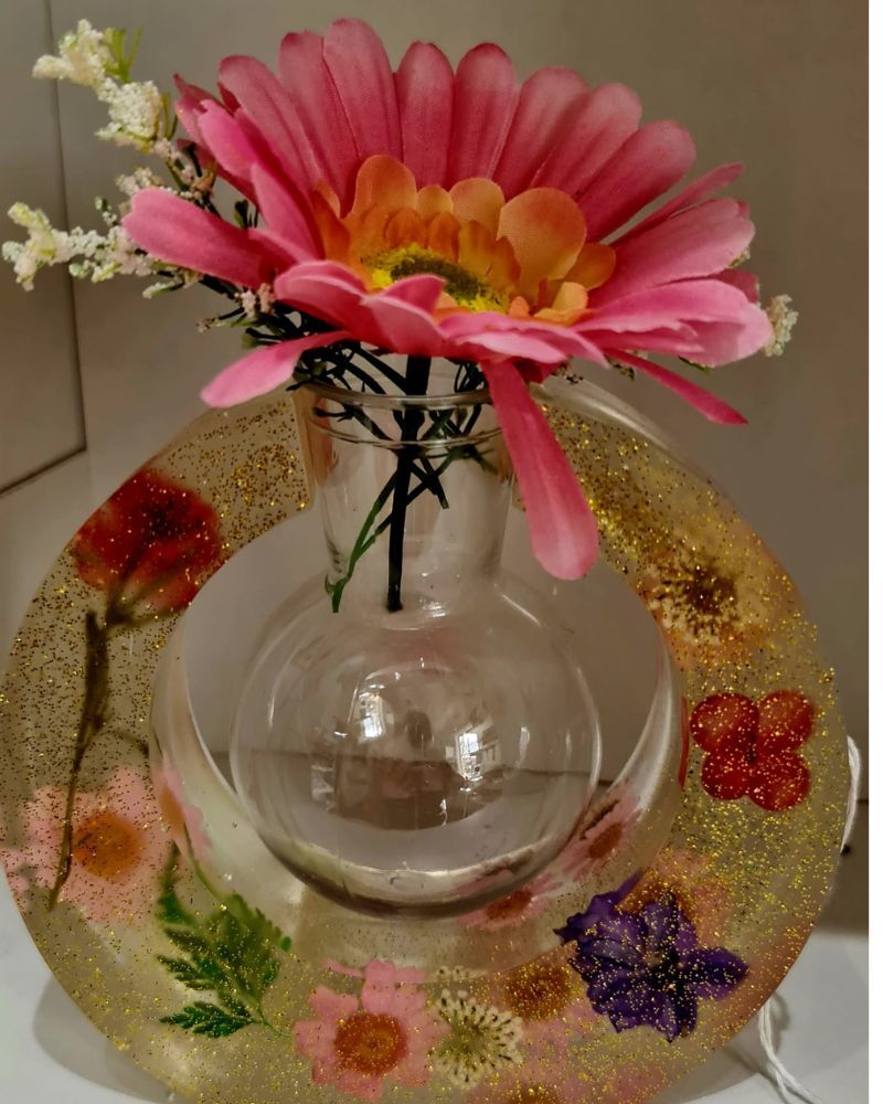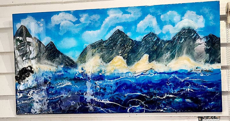 I’ve always had a deep affinity with nature. The vibrant colours and textures of which I try to recreate in my artwork. I love the rugged landscape of Australia’s vast coastline. The sheer beauty and diversity is a great source of inspiration for me. I enjoy recreating this vision using different mediums, resin/acrylics, and a multitude of ‘treasures’, including shells, that I collect on the beach.