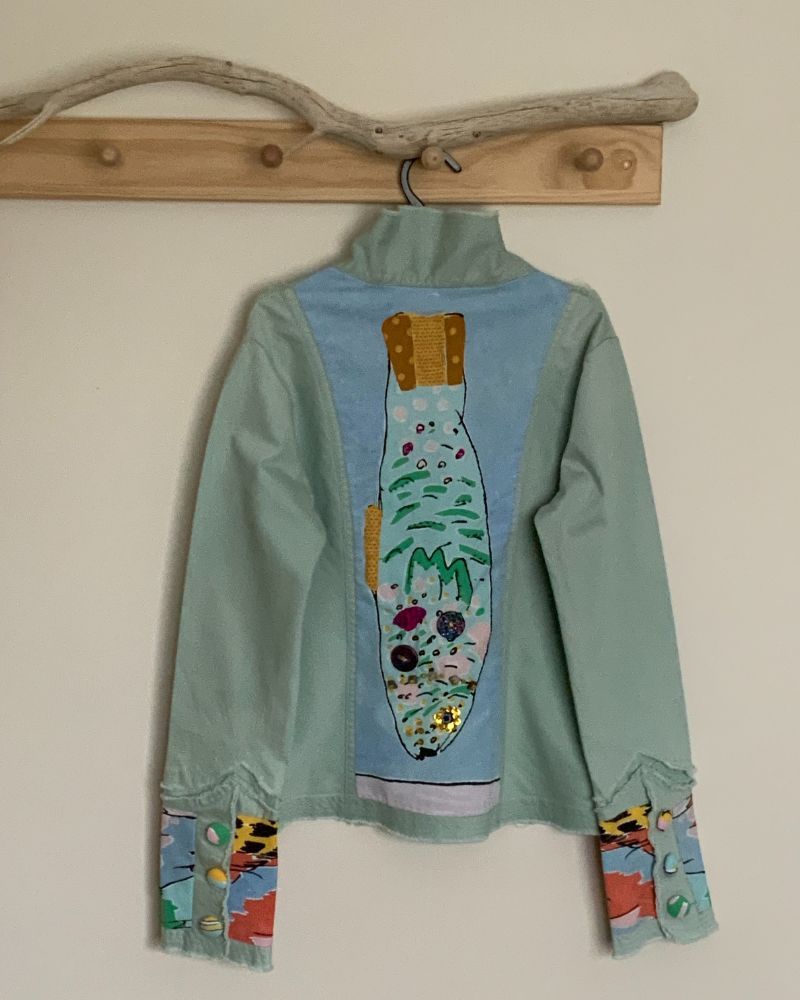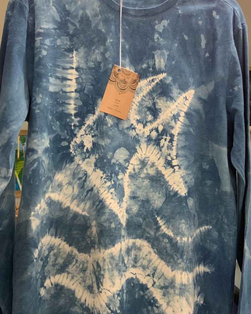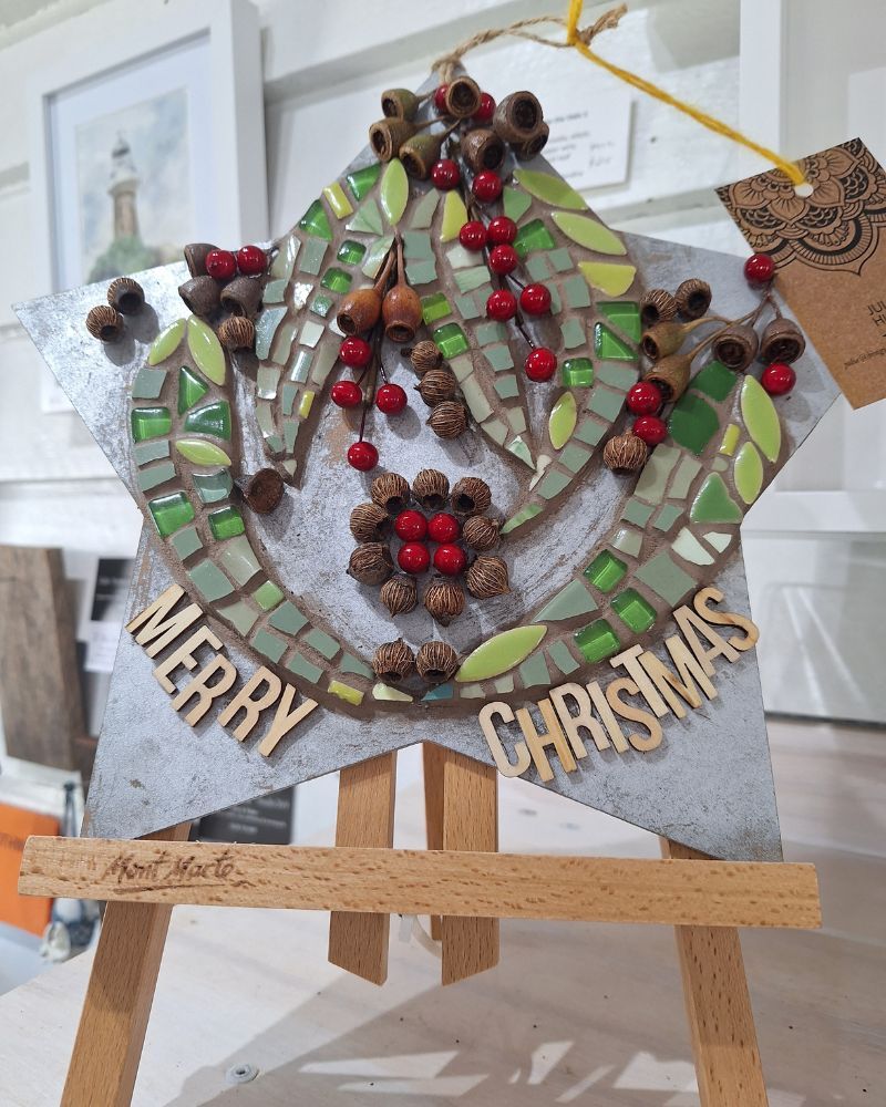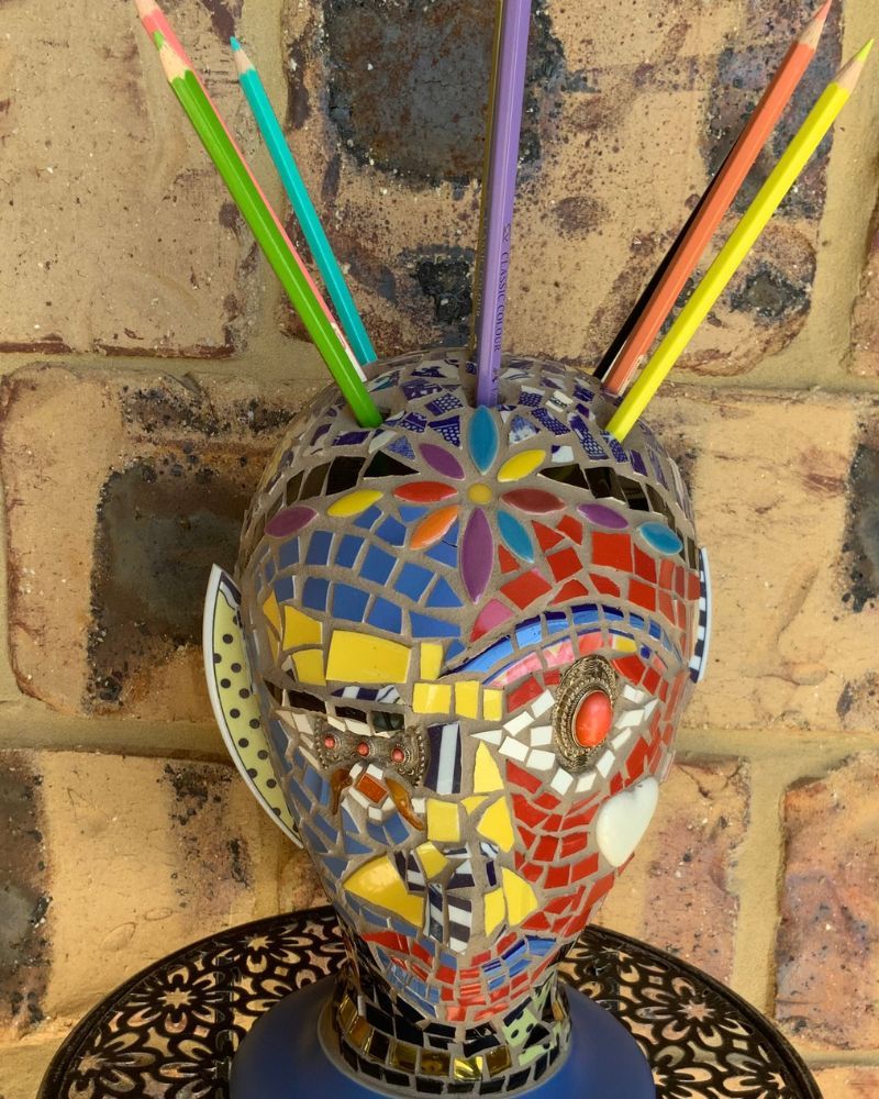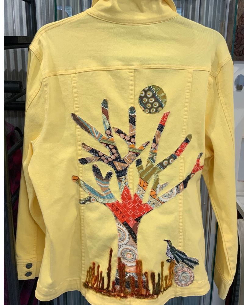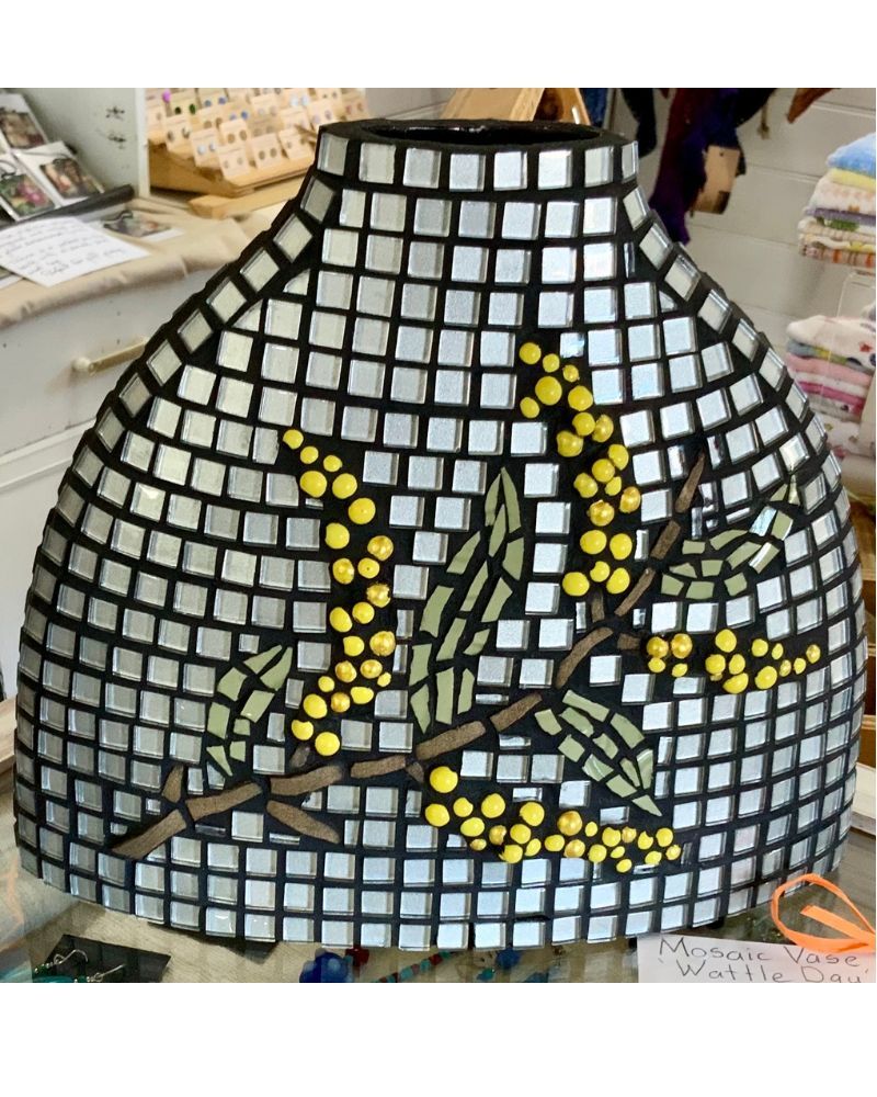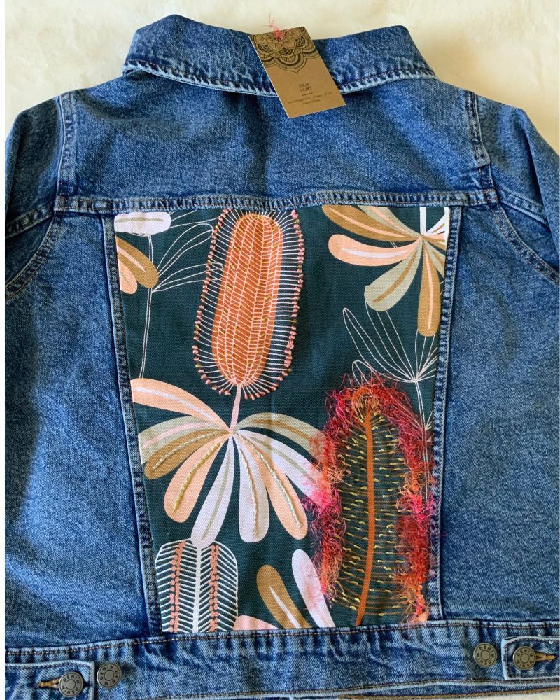 She is very thankful to have been accepted as a member of Artisans Nest and to be able to work and play in the company of such talented artists. At the moment Julie creates mosaics, using old recycled crockery and also seed pods, gum nuts and native seeds which she gathers from all over Australia and also from her property on the South Coast. She also loves to sew and embroider stunning fabrics which she sews onto Denim Jackets and jeans. Just at the moment Julie is busy hand dying recycled men’s and unisex shirts using the Shibori technique.